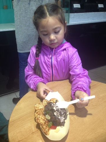we decided to share with the bean and went big with a warm waffle in addition to a nice serving of fro-yo.