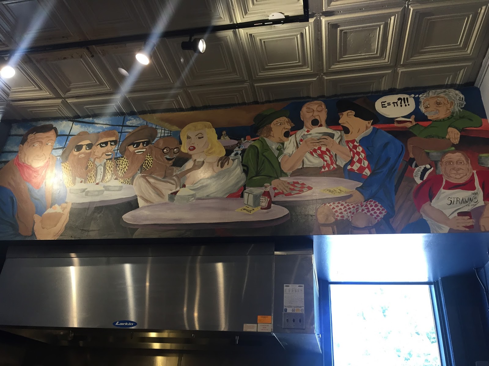 and it was a good call. we enjoyed listening to the chatter around us and our server's thick southern accent, and the bean was enthralled by the various murals painted on the cafe's walls.